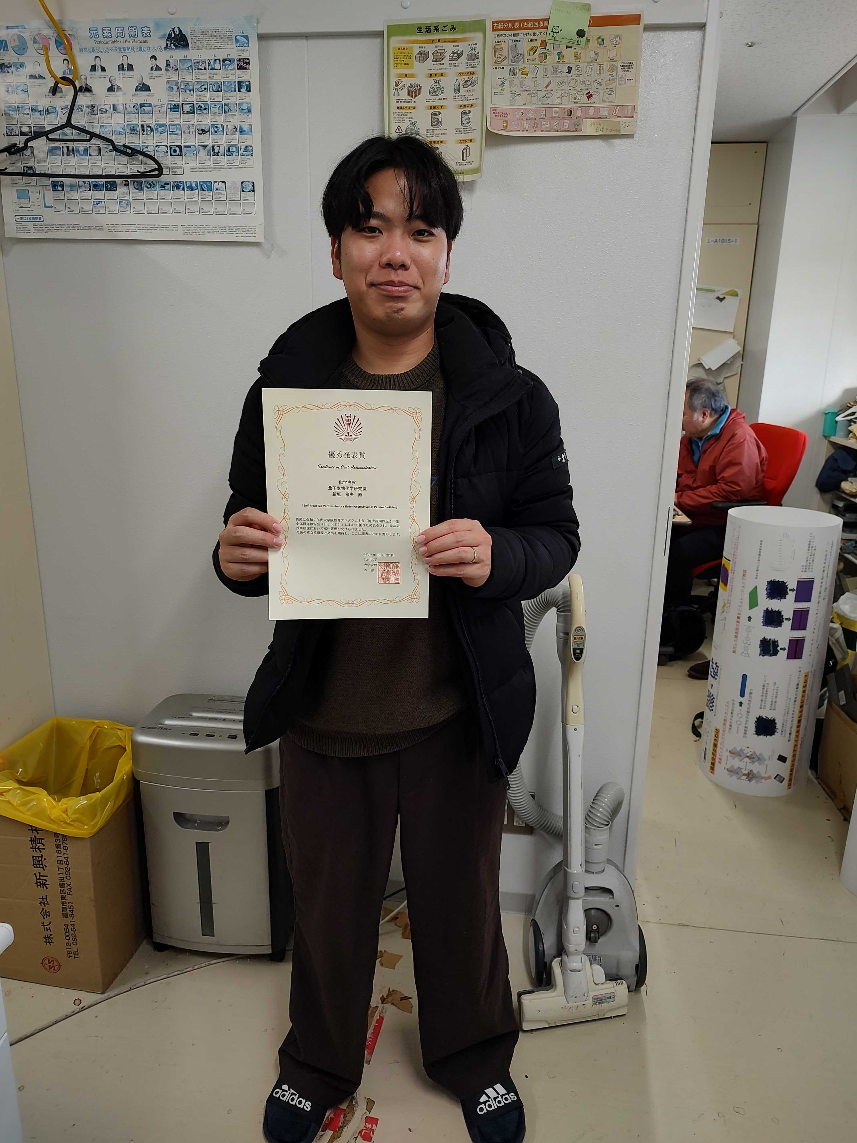 - 2025/11 新垣さんがD2全体研究報告会において優秀発表賞を受賞しました!
