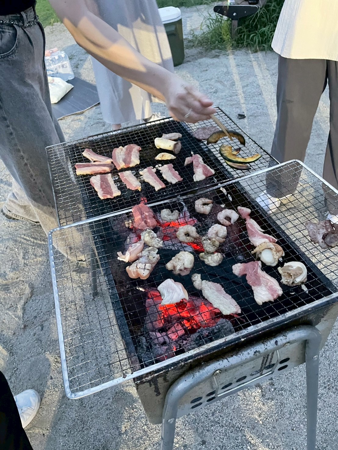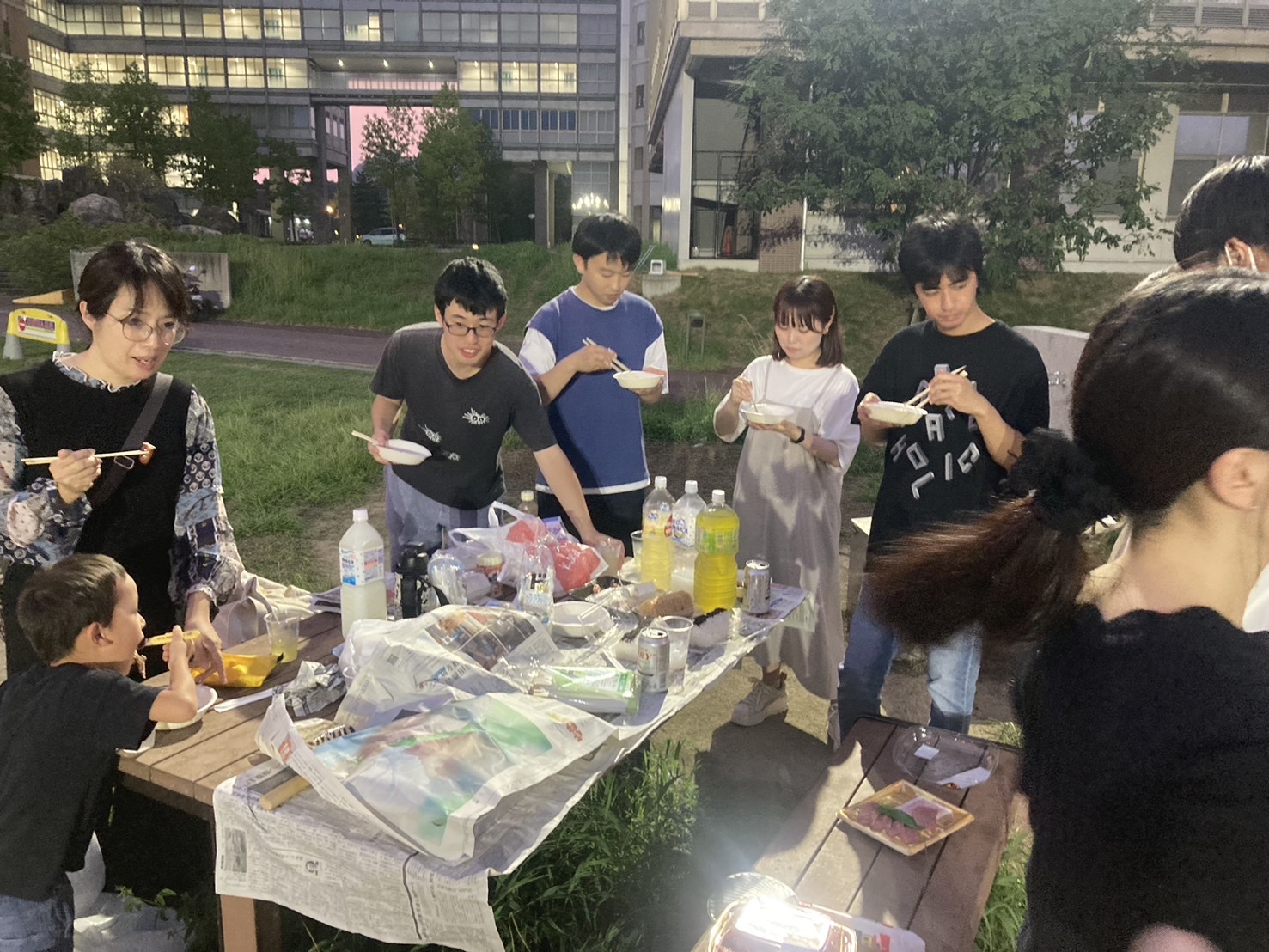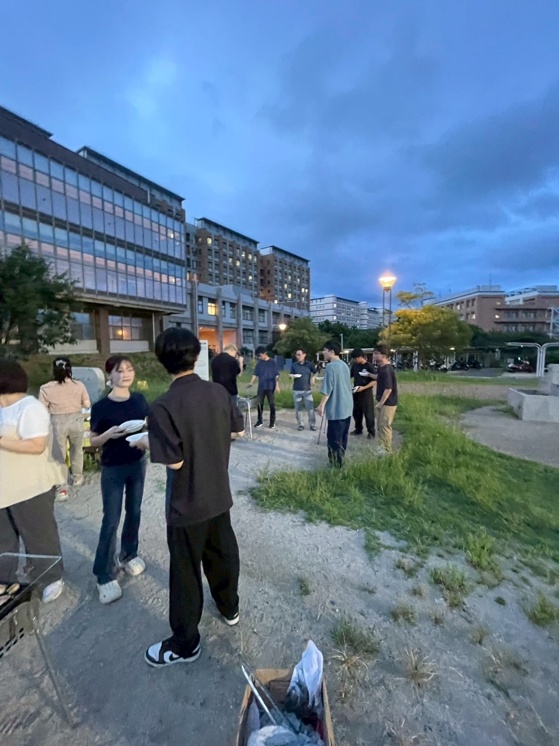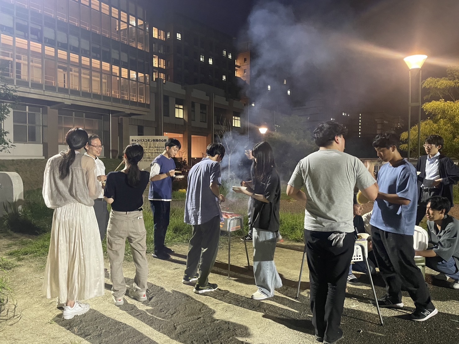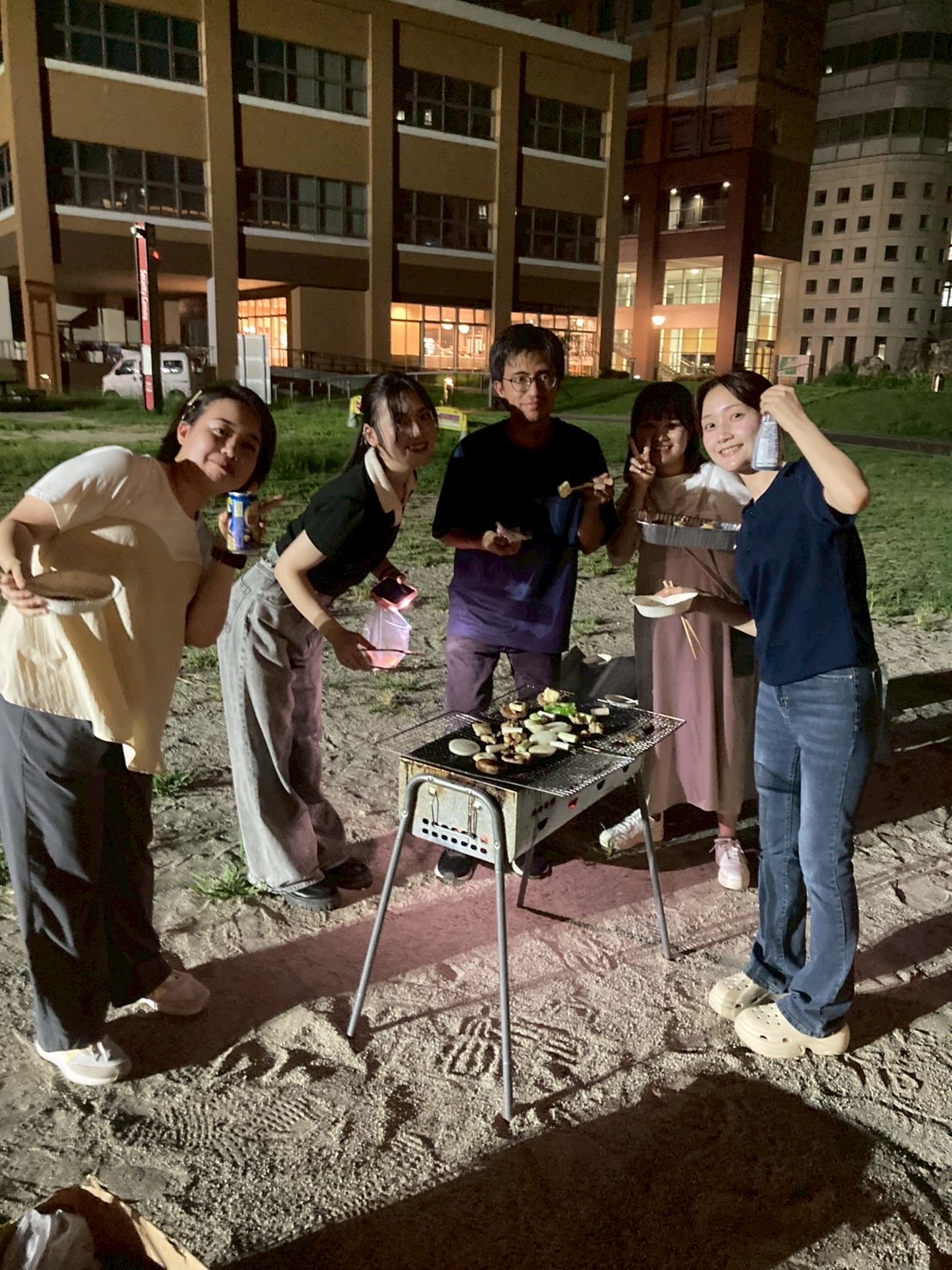 学部4年生5人が院試に無事合格し、それを祝して学内の工学部広場でBBQを行いました。