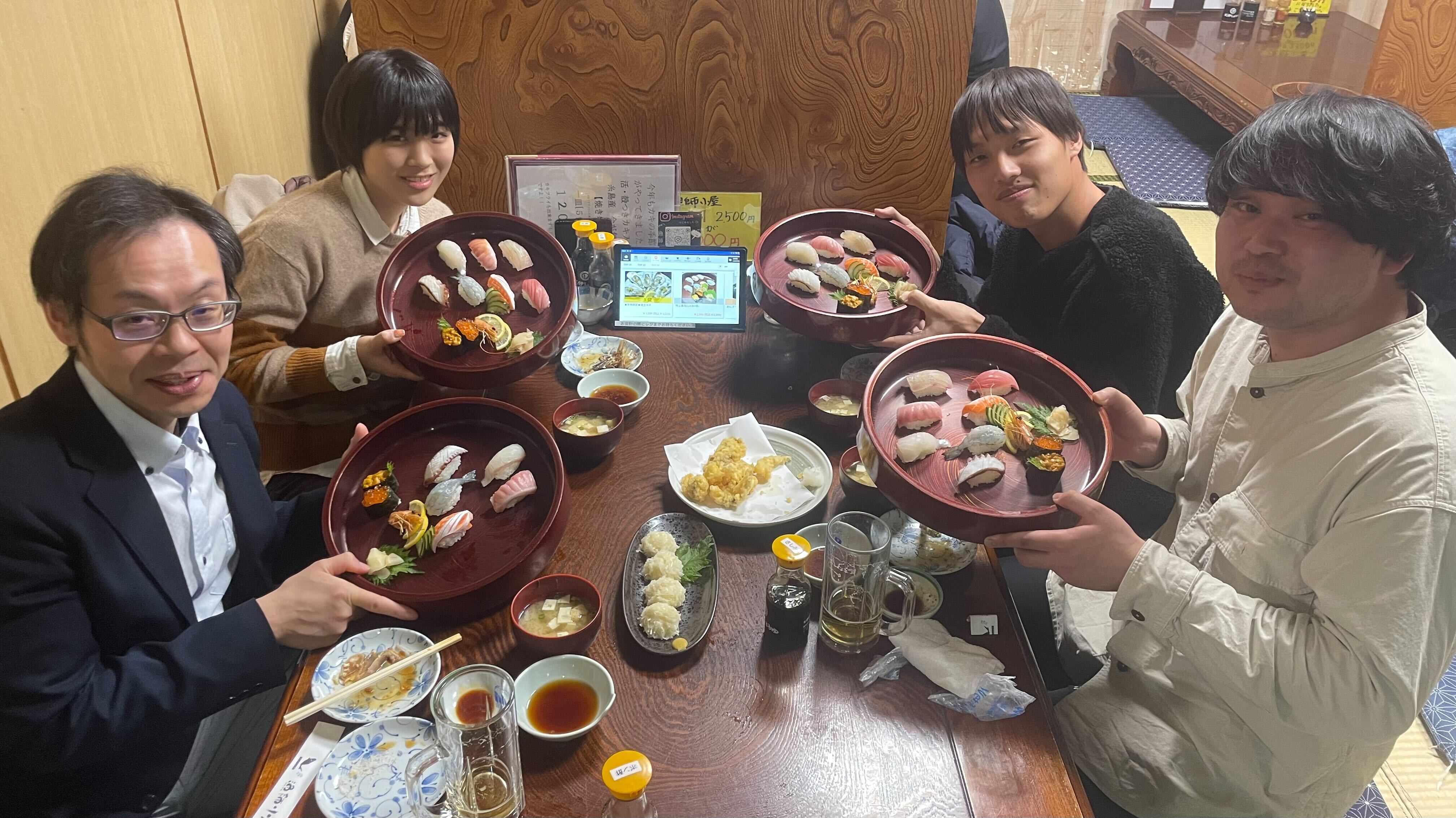 3/6~3/8の間、大阪大学メンバーの橋本さん (M2) が、九州大学で研究を行っています。そこで、九大メンバーと橋本さんで食事会を行いました。