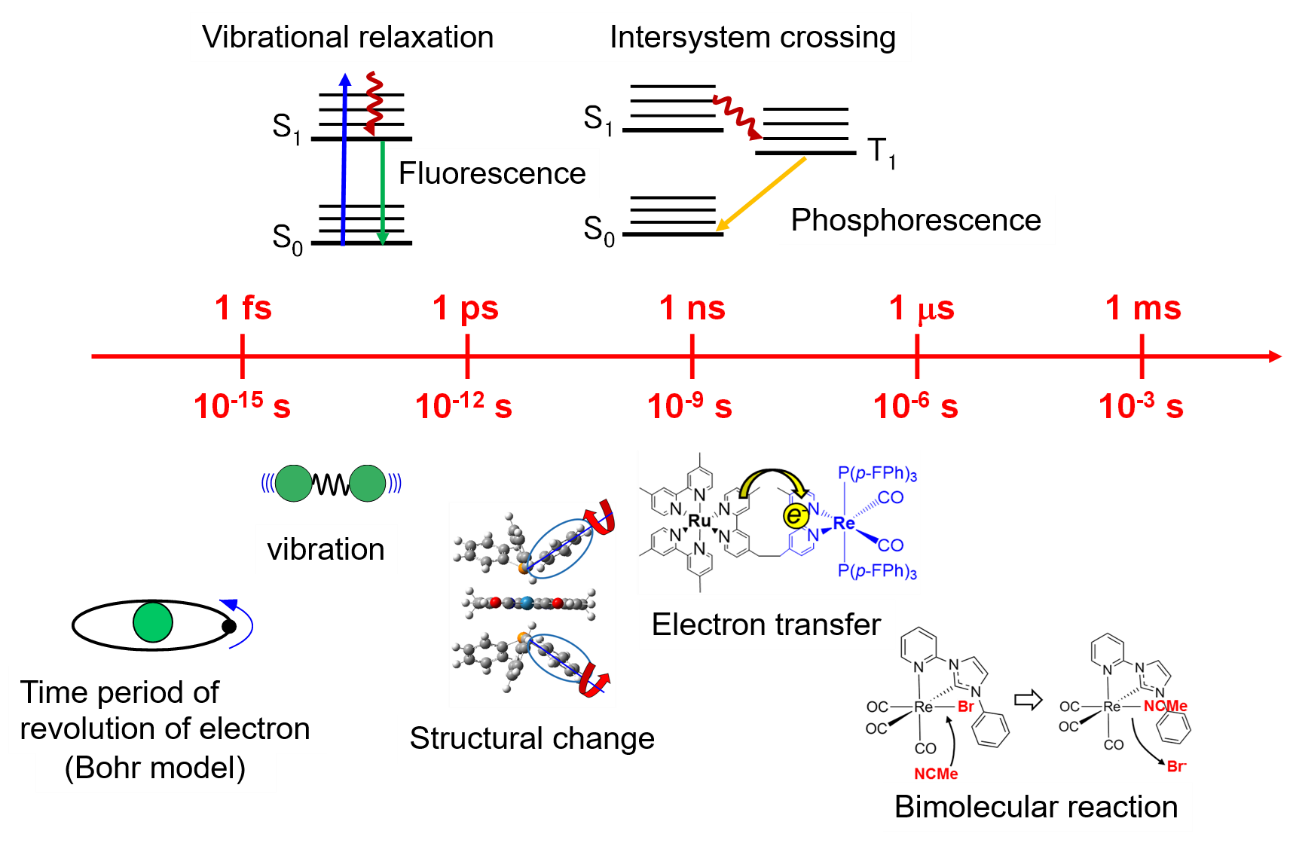 Transition metal complexes are widely used in photofunctional materials, such as artificial photosynthesis, organic solar cells, fluorescent probes, and organic photosynthesis, as key components. We have been investigating the photo-excited processes in these metal complexes using mainly time-resolved infrared vibrational spectroscopy and revealing a lot of fundamental processes that play important roles in functional materials.