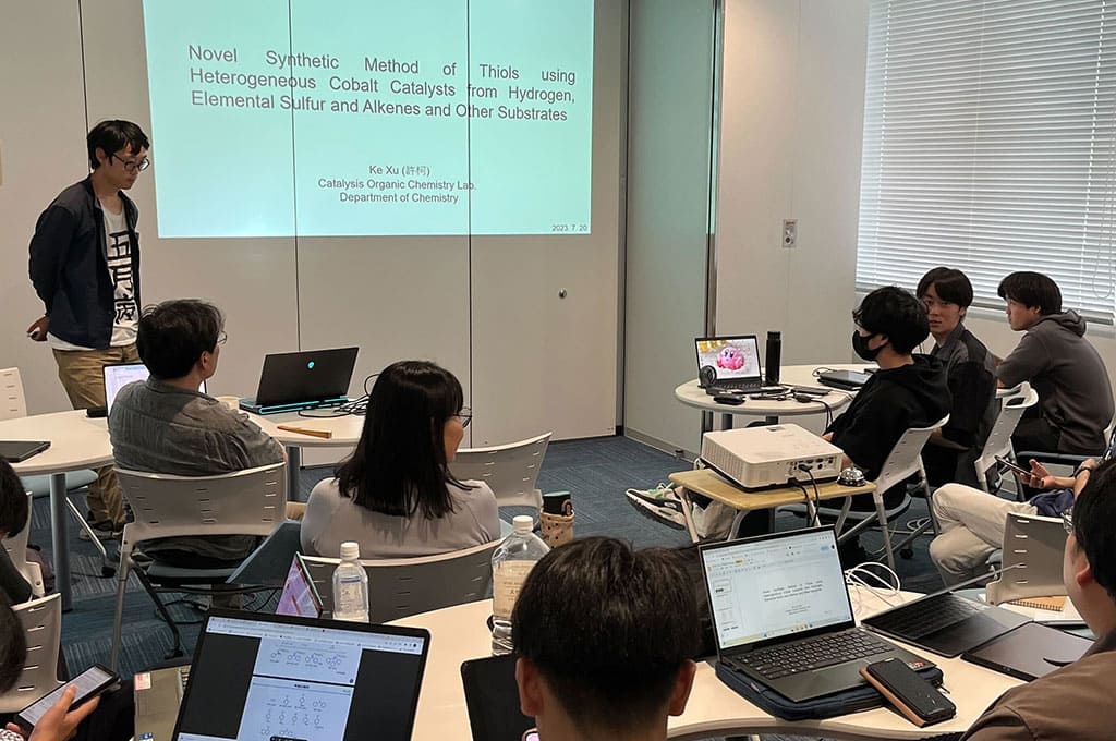 「触媒」というキーワードは共通ですが、研究対象が幅広く、またそれぞれのテーマが小さめなので、やる気次第で複数の色々な研究に携わることができます。
